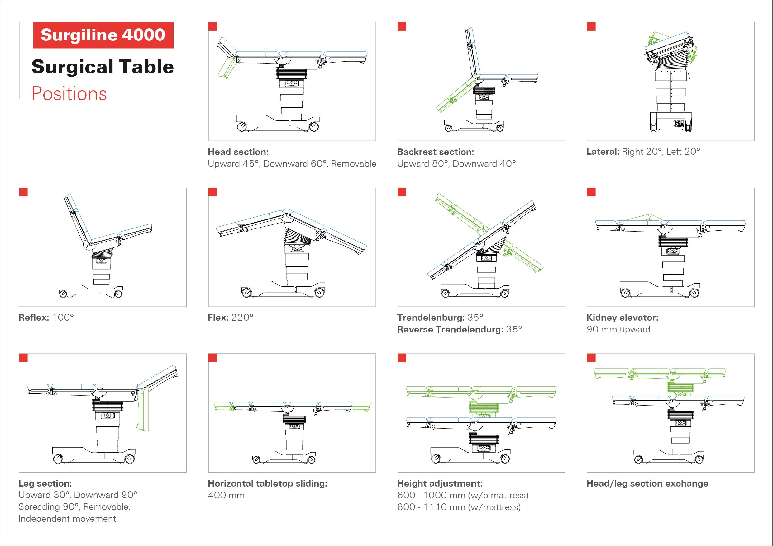 600 mm ile 1050 mm arasında ayarlanabilen yükseklik aralığı ile Surgiline 4000, çeşitli cerrahi gereksinimleri karşılar ve cerrahi ekipler için ergonomik verimliliği artırır.